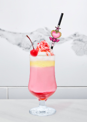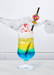 Melon flavored cream soda with a Sailor Jupiter transformation pen straw decoration