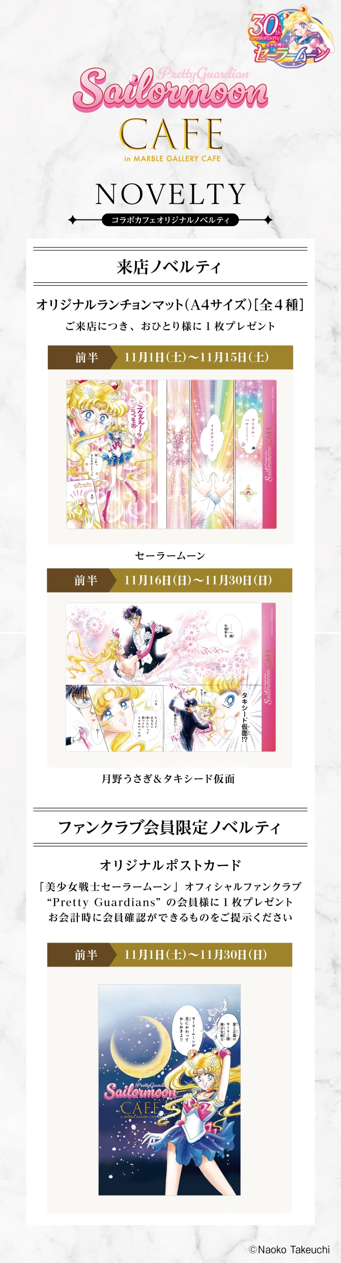 The anticipated details for the first ever Sailor Moon fan club centered cafe is here! Previously announced on Usagi’s canon birthday on June 30th, 2025, this Pretty Guardians Cafe is opening this fall on November 1st and will go through December 30th, 2025.
