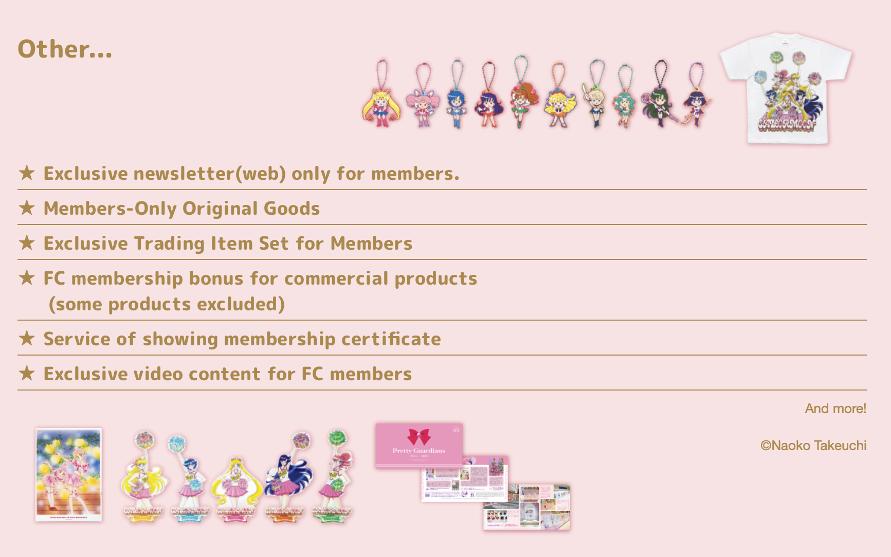 In addition to these items, there are more benefits to being a member of Pretty Guardian such as advance ticket lottery sales for Sailor Moon events, special projects, and being able to shop from the exclusive goods shop.